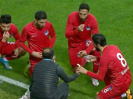 Players in a Turkish second division match broke their fast for Ramadan after a stoppage in play coincided with Iftar, the evening call to prayer.