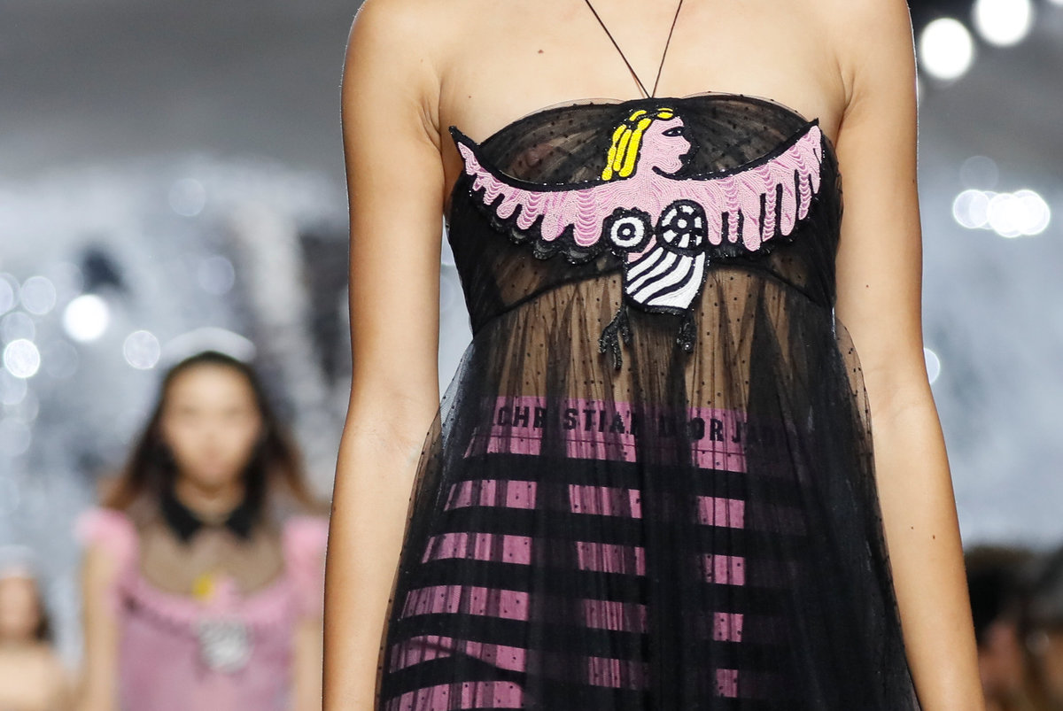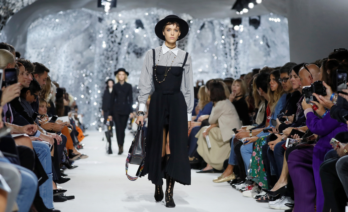 In a grotto-style hall assembled for the show and decorated with fragments of mirrors, Dior's creative director Maria Grazia Chiuri reasserted her stamp on the French fashion house on the one-year anniversary of her arrival.