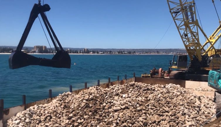 To test if this works outside the laboratory, we recorded sounds from the healthy Port Noarlunga Reef in South Australia. Then we played these sounds underwater near two large reef restoration sites offshore from Adelaide and the Yorke Peninsula.