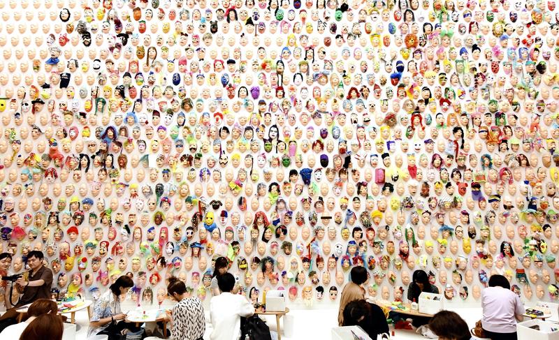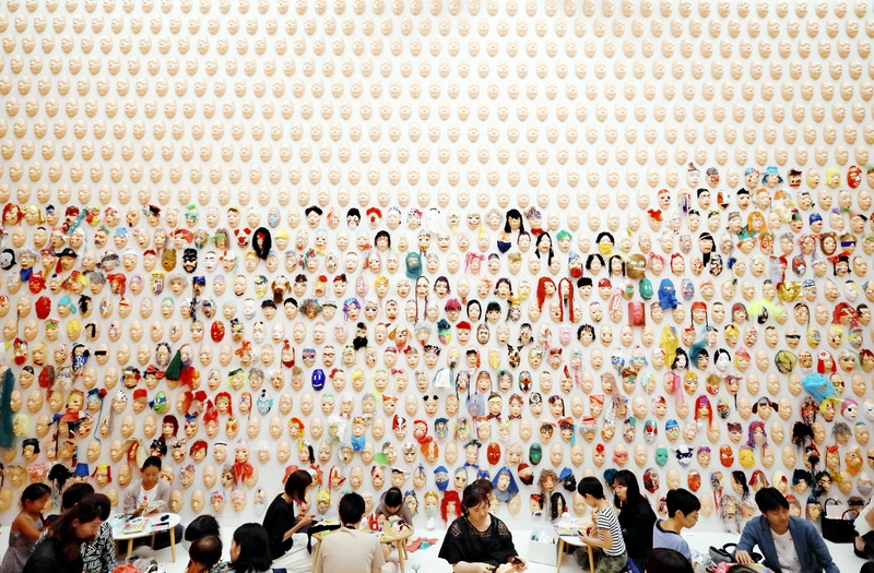 "Ugh! What on earth is this?" one of them said. They were standing in front of about 4,000 masks covering a huge wall measuring about 6 meters high.