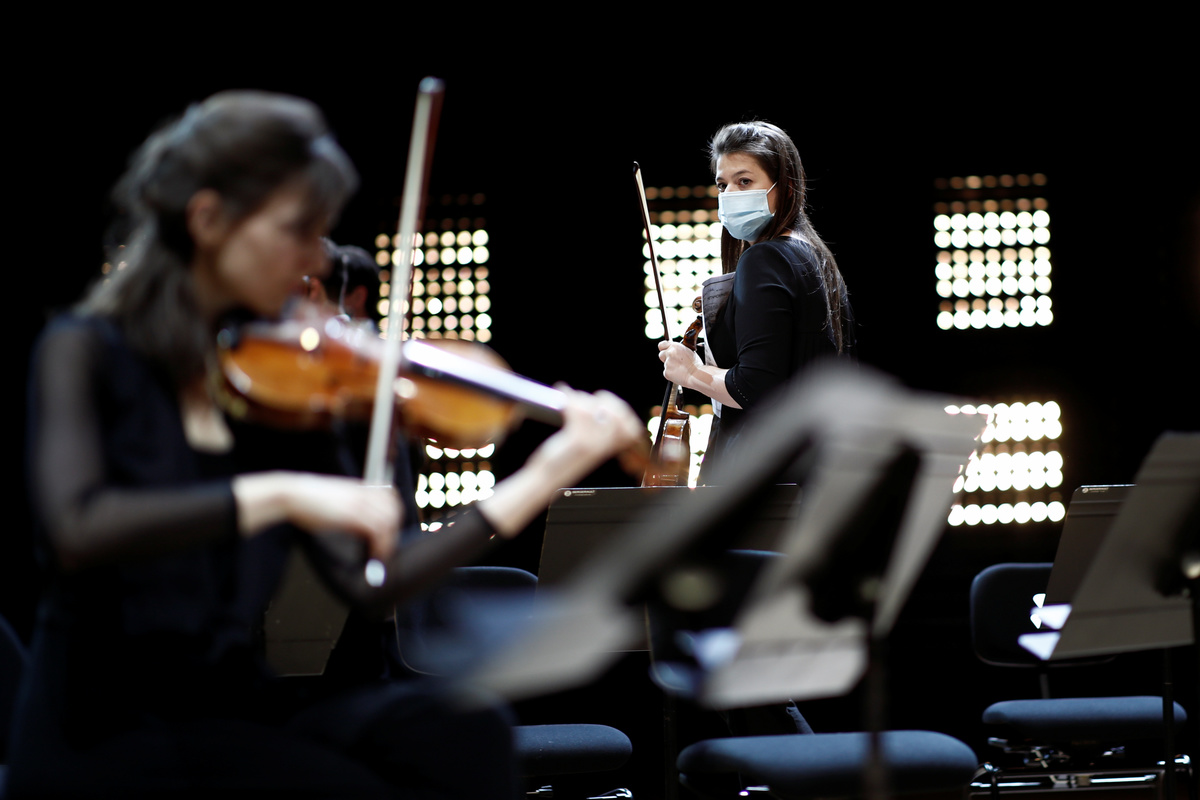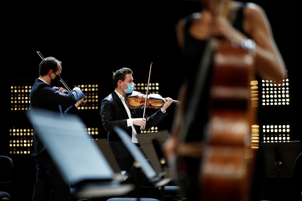 A music score of "Metamorphosen" by Richard Strauss is pictured as violinist Renaud Capucon and musicians perform during a rehearsal ahead of a concert without audience in the empty Pierre Boulez hall at the Philharmonie de Paris (Paris Philharmonic) in Paris, as the concert hall resumes its performances after France eased gradually its lockdown measures and restrictions following the outbreak of the coronavirus disease (COVID-19) in France, May 28, 2020. REUTERS/Benoit TessierLaurent Bayle, president of the Philharmonie de Paris (Paris Philharmonic), poses on stage after a rehearsal of "Metamorphosen" by Richard Strauss ahead of a concert without audience in the empty Pierre Boulez hall in Paris, as the concert hall resumes its performances after France eased gradually its lockdown measures and restrictions following the outbreak of the coronavirus disease (COVID-19) in France, May 28, 2020. REUTERS/Benoit TessierViolinist Renaud Capucon attends a rehearsal of "Metamorphosen" by Richard Strauss ahead of a concert without audience in the empty Pierre Boulez hall at the Philharmonie de Paris (Paris Philharmonic) in Paris, as the concert hall resumes its performances after France eased gradually its lockdown measures and restrictions following the outbreak of the coronavirus disease (COVID-19) in France, May 28, 2020. REUTERS/Benoit TessierA musician wearing a face mask sits in the empty Pierre Boulez hall during a rehearsal ahead of a concert without audience at the Philharmonie de Paris (Paris Philharmonic) in Paris, as the concert hall resumes its performances after France eased gradually its lockdown measures and restrictions following the outbreak of the coronavirus disease (COVID-19), in France, May 28, 2020. REUTERS/Benoit TessierMusicians wearing face masks perform "Metamorphosen" by Richard Strauss during a rehearsal ahead of a concert without audience in the empty Pierre Boulez hall at the Philharmonie de Paris (Paris Philharmonic) in Paris, as the concert hall resumes its performances after France eased gradually its lockdown measures and restrictions following the outbreak of the coronavirus disease (COVID-19), in France, May 28, 2020. REUTERS/Benoit TessierMusicians wearing face masks perform "Metamorphosen" by Richard Strauss during a rehearsal ahead of a concert without audience in the empty Pierre Boulez hall at the Philharmonie de Paris (Paris Philharmonic) in Paris, as the concert hall resumes its performances after France eased gradually its lockdown measures and restrictions following the outbreak of the coronavirus disease (COVID-19), in France, May 28, 2020. REUTERS/Benoit TessierMusicians wearing face masks perform "Metamorphosen" by Richard Strauss during a rehearsal ahead of a concert without audience in the empty Pierre Boulez hall at the Philharmonie de Paris (Paris Philharmonic) in Paris, as the concert hall resumes its performances after France eased gradually its lockdown measures and restrictions following the outbreak of the coronavirus disease (COVID-19), in France, May 28, 2020. REUTERS/Benoit TessierViolinist Renaud Capucon and musicians perform "Metamorphosen" by Richard Strauss during a rehearsal ahead of a concert without audience in the empty Pierre Boulez hall at the Philharmonie de Paris (Paris Philharmonic) in Paris, as the concert hall resumes its performances after France eased gradually its lockdown measures and restrictions following the outbreak of the coronavirus disease (COVID-19), in France, May 28, 2020. REUTERS/Benoit TessierViolinist Renaud Capucon and musicians perform "Metamorphosen" by Richard Strauss during a rehearsal ahead of a concert without audience in the empty Pierre Boulez hall at the Philharmonie de Paris (Paris Philharmonic) in Paris, as the concert hall resumes its performances after France eased gradually its lockdown measures and restrictions following the outbreak of the coronavirus disease (COVID-19), in France, May 28, 2020. REUTERS/Benoit TessierViolinist Renaud Capucon and musicians perform "Metamorphosen" by Richard Strauss during a rehearsal ahead of a concert without audience in the empty Pierre Boulez hall at the Philharmonie de Paris (Paris Philharmonic) in Paris, as the concert hall resumes its performances after France eased gradually its lockdown measures and restrictions following the outbreak of the coronavirus disease (COVID-19), in France, May 28, 2020. REUTERS/Benoit TessierViolinist Renaud Capucon performs "Metamorphosen" by Richard Strauss during a rehearsal ahead of a concert without audience in the empty Pierre Boulez hall at the Philharmonie de Paris (Paris Philharmonic) in Paris, as the concert hall resumes its performances after France eased gradually its lockdown measures and restrictions following the outbreak of the coronavirus disease (COVID-19), in France, May 28, 2020. REUTERS/Benoit Tessier