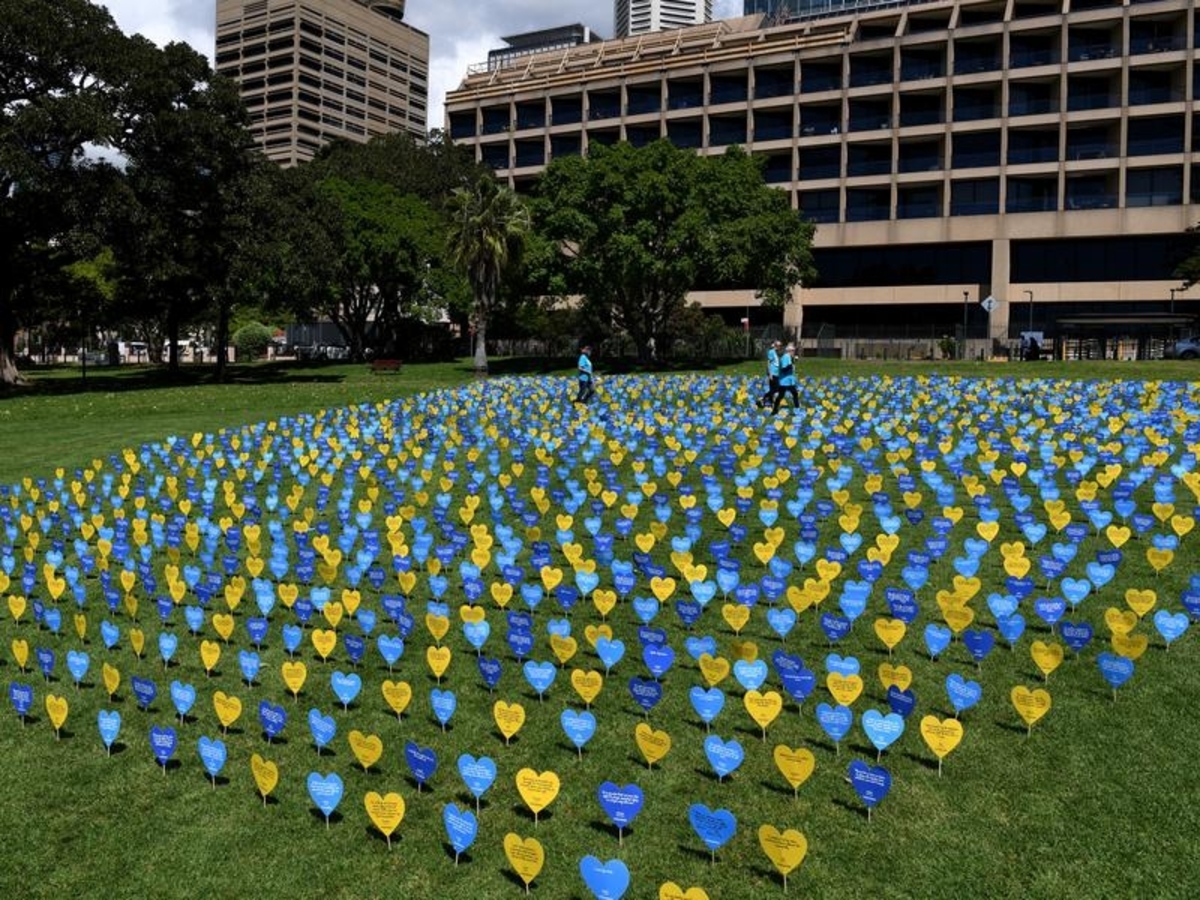 Dying With Dignity volunteers planted the hearts, meant to deliver messages from people who support voluntary assisted dying laws but cannot attend in person due to COVID-19 restrictions.