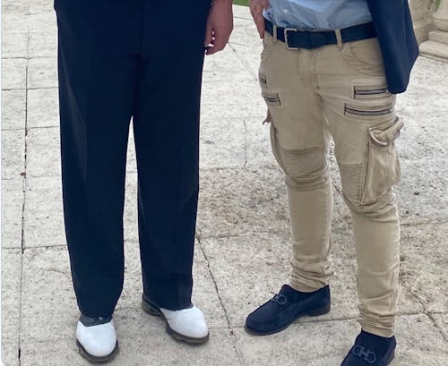 You ever just stop and think about pants, man? Like, wow, pants! We all wear 'em (usually) but, what's their deal, y'know? Specifically, I am referring to these pants, worn — and bragged about — by generic MAGA sycophant Greg Kelly during a recent meeting with former President Donald Trump.