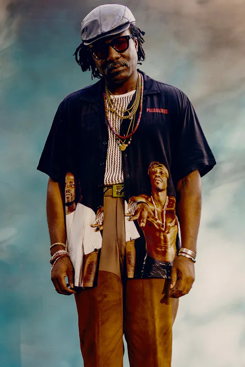 Using imagery from the ‘90s and early ‘00s, Pleasures will soon drop a small capsule of streetwear staples featuring Big Boi and Andre 3000. T-shirts and hoodies feature photographs that you may not have seen before, but the highlight of the lot is without a doubt a black short-sleeve button-up featuring the cover from Outkast’s classic 2000 album Stankonia. Gone is the iconic black-and-white American flag from the background, but Big Boi and Andre remain on either side of the buttons for a tribute diehards should love.