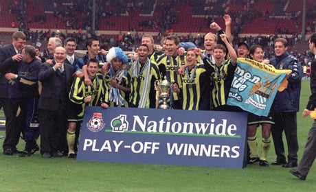 1999: Promoted to First Division (second tier) after beating Gillingham on penalties in Second Division play-off final.
