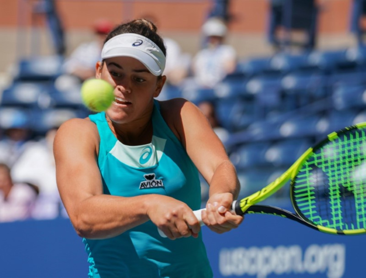 Sept 4, 2017; New York, NY, USA; Jennifer Brady of the United States returns a shot to Karolina Pliskova of the Czech Republic on day eight of the U.S. Open tennis tournament in Ashe Stadium at the USTA Billie Jean King National Tennis Center. Mandatory Credit: Robert Deutsch-USA TODAY Sports