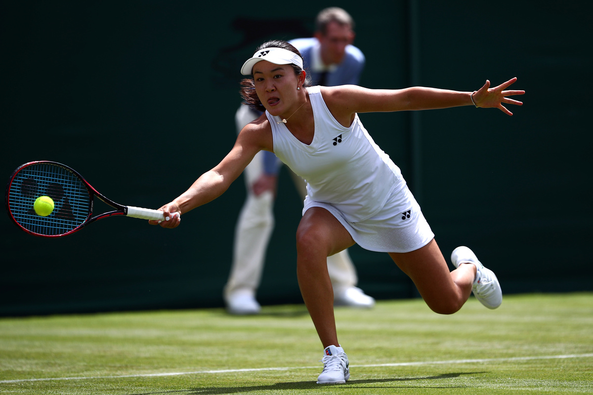 Zhu, 25, who failed to qualify for Wimbledon the last three years, scurried up and down the baseline, chasing everything down and countering the serve with some fine returning.