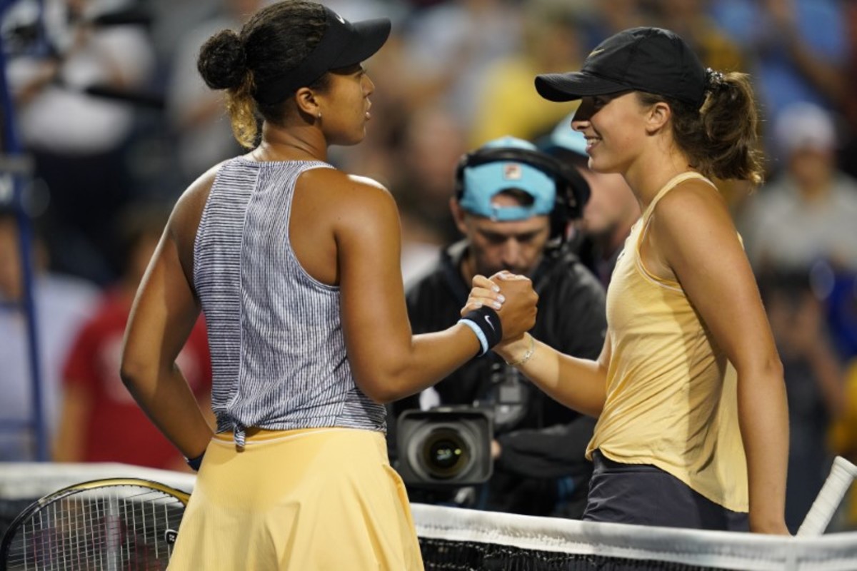 Aug 8, 2019; Toronto, Ontario, Canada; Naomi Osaka (JPN) serves a ball to Iga Swiatek (not pictured) during the Rogers Cup tennis tournament at Aviva Centre. Mandatory Credit: John E. Sokolowski-USA TODAY SportsAug 8, 2019; Toronto, Ontario, Canada; Naomi Osaka (JPN) hits a ball to Iga Swiatek (not pictured) during the Rogers Cup tennis tournament at Aviva Centre. Mandatory Credit: John E. Sokolowski-USA TODAY SportsAug 8, 2019; Toronto, Ontario, Canada; Iga Swiatek (POL) hits a ball to Naomi Osaka (not pictured) during the Rogers Cup tennis tournament at Aviva Centre. Mandatory Credit: John E. Sokolowski-USA TODAY SportsAug 8, 2019; Toronto, Ontario, Canada; Iga Swiatek (POL) reacts to point against Naomi Osaka (not pictured) during the Rogers Cup tennis tournament at Aviva Centre. Mandatory Credit: John E. Sokolowski-USA TODAY SportsAug 8, 2019; Toronto, Ontario, Canada; Naomi Osaka (JPN) watches her return to Iga Swiatek (not pictured) during the Rogers Cup tennis tournament at Aviva Centre. Mandatory Credit: John E. Sokolowski-USA TODAY SportsAug 8, 2019; Toronto, Ontario, Canada; Iga Swiatek (POL) hits a ball to Naomi Osaka (not pictured) during the Rogers Cup tennis tournament at Aviva Centre. Mandatory Credit: John E. Sokolowski-USA TODAY SportsAug 8, 2019; Toronto, Ontario, Canada; Naomi Osaka (JPN) reacts after defeating Iga Swiatek (not pictured) during the Rogers Cup tennis tournament at Aviva Centre. Mandatory Credit: John E. Sokolowski-USA TODAY SportsAug 8, 2019; Toronto, Ontario, Canada; Iga Swiatek (right) congratulates Naomi Osaka (left) on her win during the Rogers Cup tennis tournament at Aviva Centre. Mandatory Credit: John E. Sokolowski-USA TODAY SportsAug 8, 2019; Toronto, Ontario, Canada; Simona Halep (Romania) plays a shot against Svetlana Kuznetsova (Russia) during the Rogers Cup tennis tournament at Aviva Centre. Mandatory Credit: Dan Hamilton-USA TODAY SportsAug 8, 2019; Toronto, Ontario, Canada; Svetlana Kuznetsova (Russia) plays a shot against Simona Halep (Romania) during the Rogers Cup tennis tournament at Aviva Centre. Mandatory Credit: Dan Hamilton-USA TODAY SportsAug 8, 2019; Toronto, Ontario, Canada; Simona Halep (Romania) serves against Svetlana Kuznetsova (Russia) during the Rogers Cup tennis tournament at Aviva Centre. Mandatory Credit: Dan Hamilton-USA TODAY SportsFILE PHOTO: Aug 7, 2019; Toronto, Ontario, Canada; Karolina Pliskova (Czech) hits the ball against Alison Riske ((USA) during the Rogers Cup tennis tournament at Aviva Centre. Mandatory Credit: Dan Hamilton-USA TODAY SportsFILE PHOTO: Aug 5, 2019; Toronto, Ontario, Canada; Anett Kontaveit (Estonia) hits the ball against Maria Sharapova (Russia) during the Rogers Cup tennis tournament at Aviva Centre. Mandatory Credit: Dan Hamilton-USA TODAY Sports