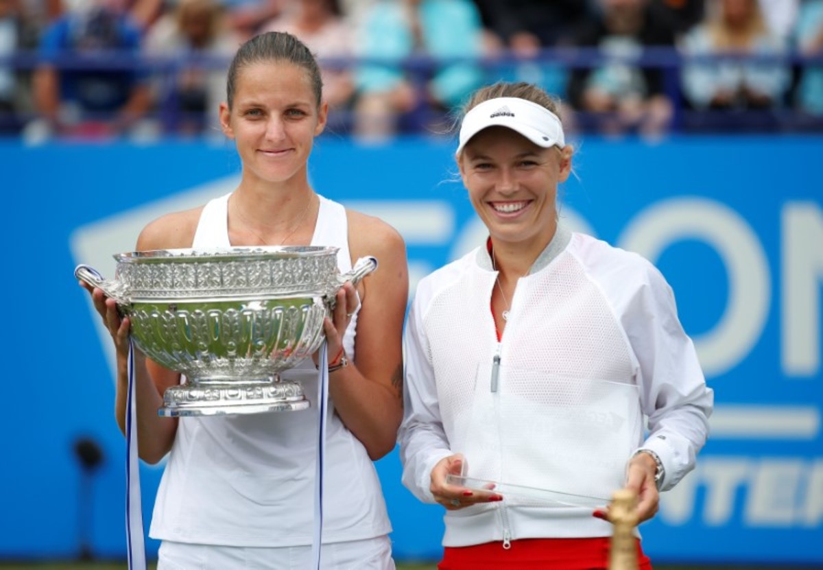 Tennis - WTA Premier - Aegon International - Eastbourne, Britain - July 1, 2017 Denmark's Caroline Wozniacki in action during her final match against Czech Republic's Karolina Pliskova Action Images via Reuters/Matthew ChildsTennis - WTA Premier - Aegon International - Eastbourne, Britain - July 1, 2017 Denmark's Caroline Wozniacki in action during her final match against Czech Republic's Karolina Pliskova Action Images via Reuters/Matthew ChildsTennis - WTA Premier - Aegon International - Eastbourne, Britain - July 1, 2017 Czech Republic's Karolina Pliskova in action during her final match against Denmark's Caroline Wozniacki Action Images via Reuters/Matthew ChildsTennis - WTA Premier - Aegon International - Eastbourne, Britain - July 1, 2017 Czech Republic's Karolina Pliskova in action during her final match against Denmark's Caroline Wozniacki Action Images via Reuters/Matthew ChildsTennis - WTA Premier - Aegon International - Eastbourne, Britain - July 1, 2017 Czech Republic's Karolina Pliskova celebrates after winning in the Final against Denmark's Caroline Wozniacki Action Images via Reuters/Matthew Childs