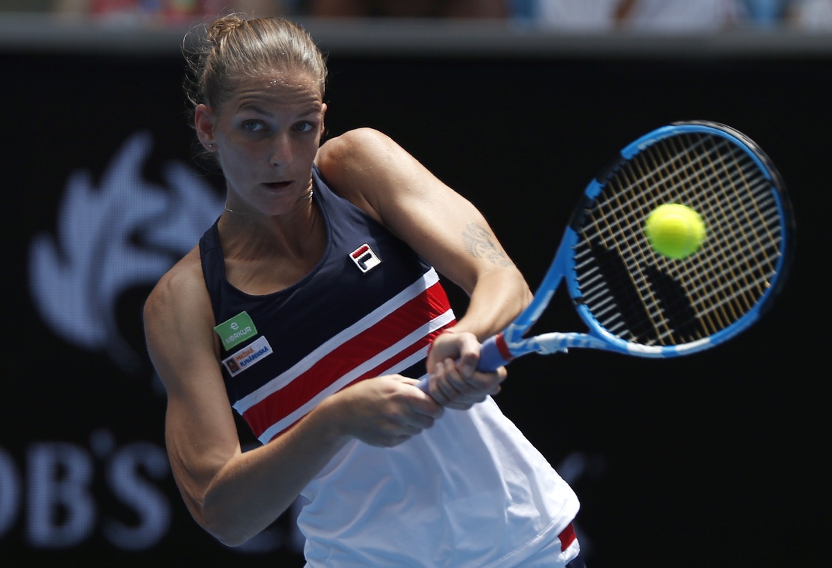 Tennis - Australian Open - Margaret Court Arena, Melbourne, Australia, January 20, 2018. Karolina Pliskova of Czech Republic hits a shot against Lucie Safarova of Czech Republic. REUTERS/Issei Kato