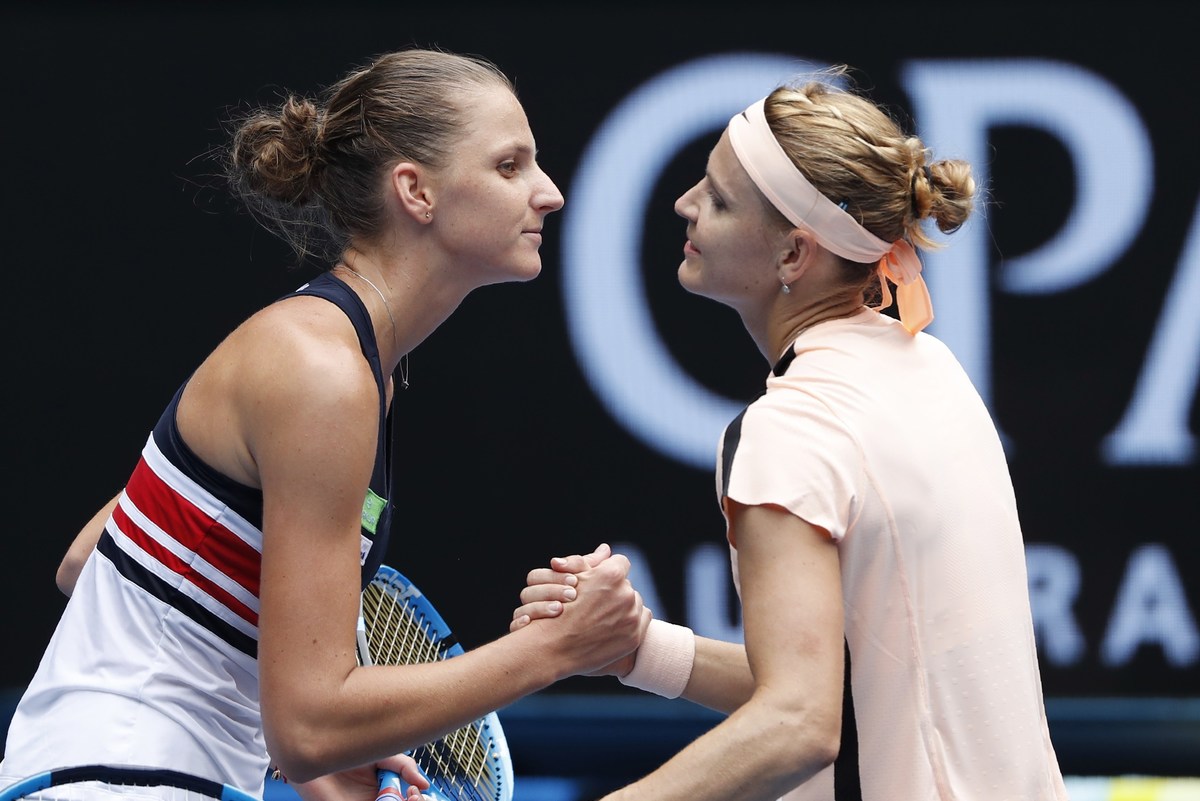 Tennis - Australian Open - Margaret Court Arena, Melbourne, Australia, January 20, 2018. Karolina Pliskova of Czech Republic shakes hands with Lucie Safarova of Czech Republic after Pliskova won their match. REUTERS/Issei Kato