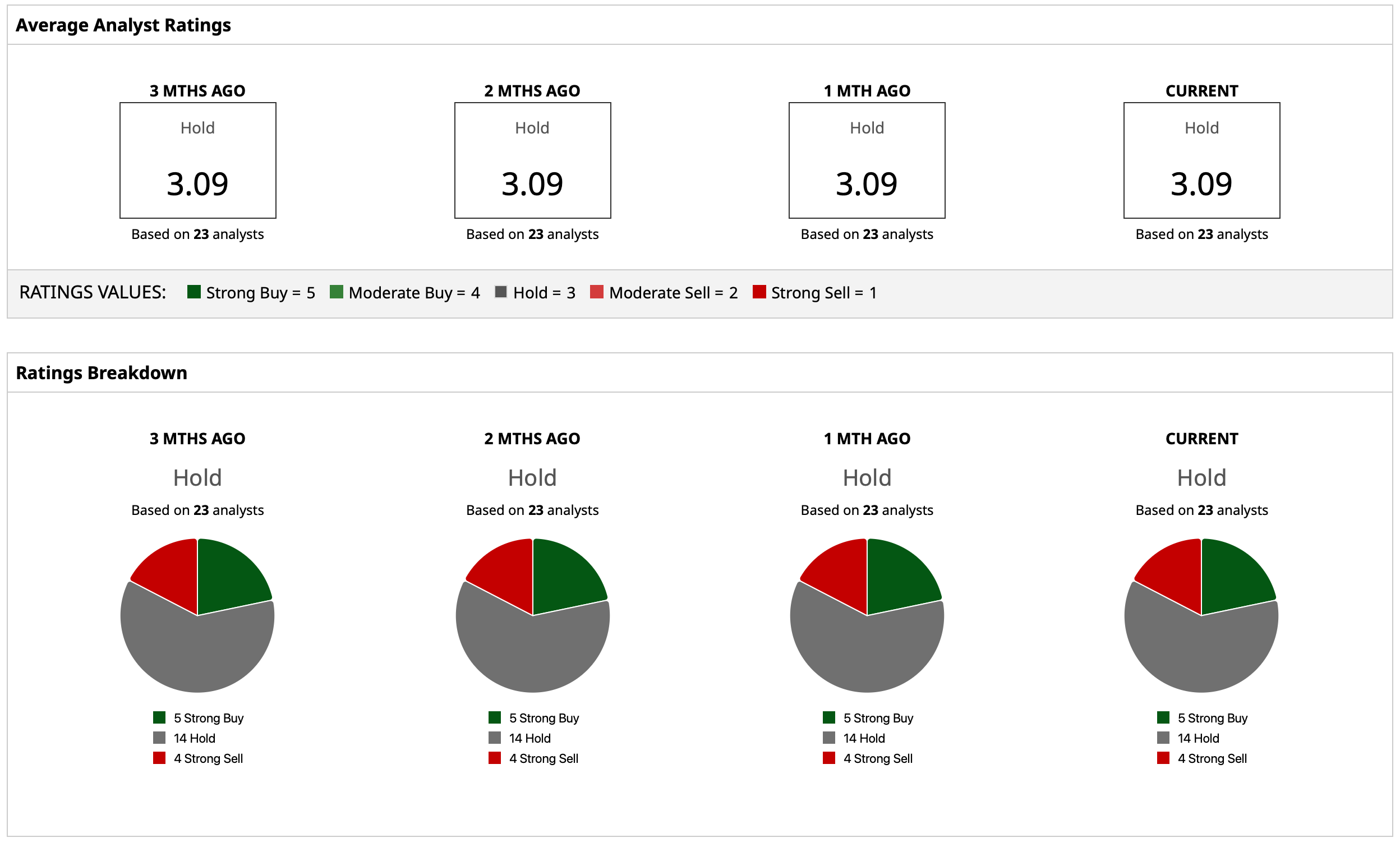 Taking all of this into account, analysts have unsurprisingly deemed PLUG stock a “Hold” with a $2.08 mean target price that, while surpassed, isn't far from its current price. The high target price of $4.50 denotes an upside potential of about 87.5% from current levels. Out of 23 analysts covering the stock, five have a “Strong Buy” rating, 14 have a “Hold” rating, and four have a “Strong Sell” rating.