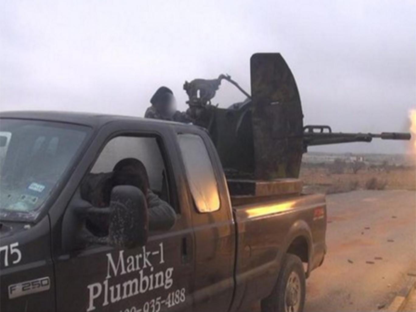 The photo indicated that the truck no longer carried ceramic parts; emerging from its cargo bed were a black-cloaked figure and an antiaircraft gun. According to the tweet, the truck was being used by Jaish al-Muhajireen wal-Ansar (the “Muhajireen Brigade”), an extremist group fighting the Syrian government.
