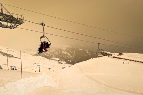 The cloud of fine sand blown northward from Algeria tinted skies red and mixed with fresh snowfall in the Alps and Pyrenees, leaving slopes looking orange.