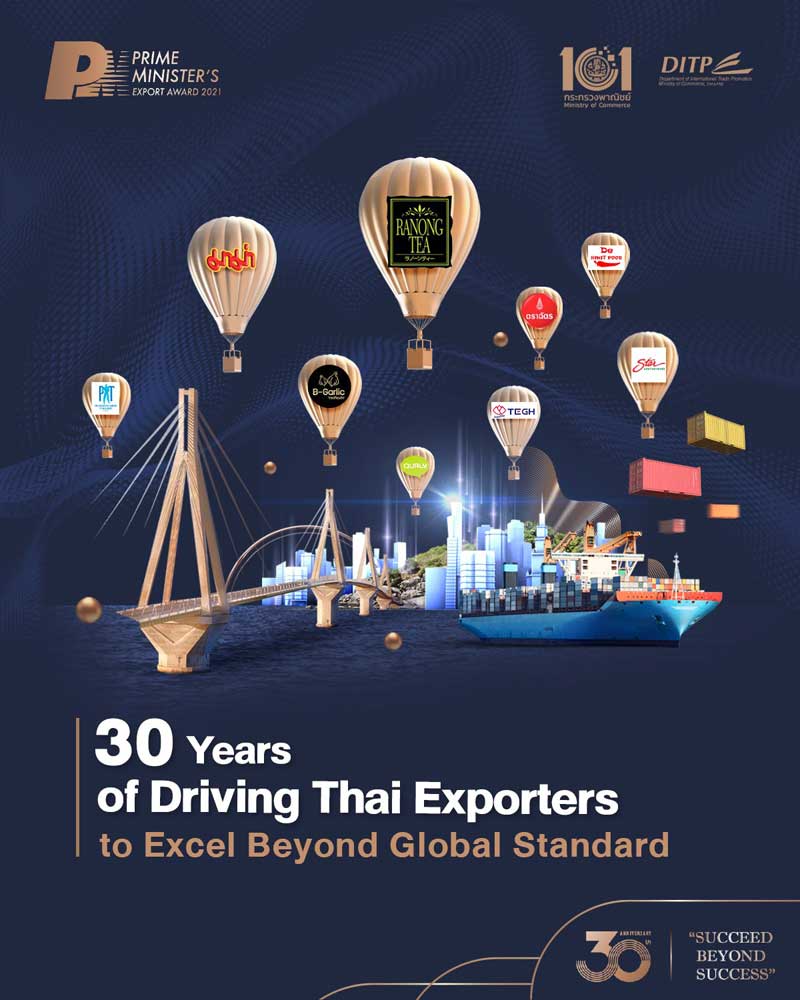 Since its inception in 1992, the Prime Minister’s Export Award (PM Award) has represented 30 years of valuable contribution to Thailand’s economy, society and drive towards sustainability. Just like many young entrepreneurs winning this prestigious national award, the PM Award is growing strong and filled with passion and determination for the future. Hosted by the Department of International Trade Promotion (DITP), Ministry of Commerce, the award recognises Thai exporters and business owners who have developed high-quality, competitive products and services well-renowned on the world stage.