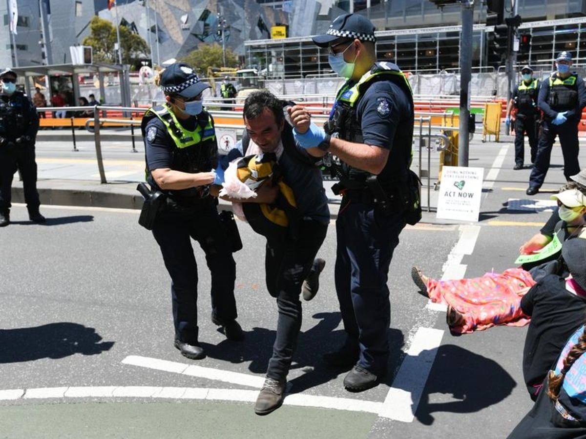 Protesters calling for the declaration of a "climate emergency" have clashed with police in Melbourne amid news the federal government is unlikely to rely on "carry-over credits" to reach its 2030 Paris emissions reduction target.