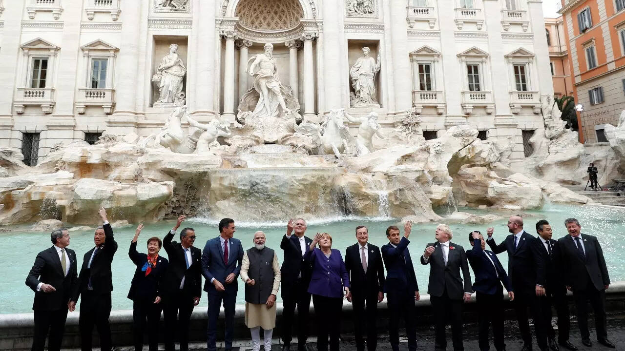 G20 leaders toss a coin into Rome\'s iconic Trevi Fountain on the sidelines of the G20 summit in Rome. (Reuters photo)