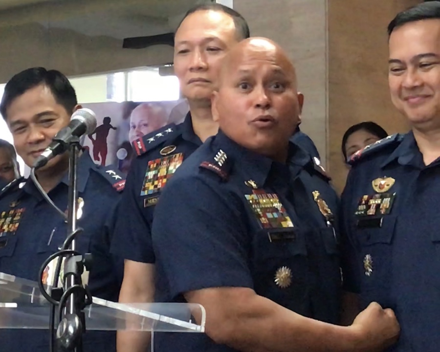 Midway during the press conference, an unknowing Deputy Director General Archie Gamboa, the PNP's 4th top official, was held in place by Dela Rosa. The top cop then planted restrained punches on the gut of his subordinate.