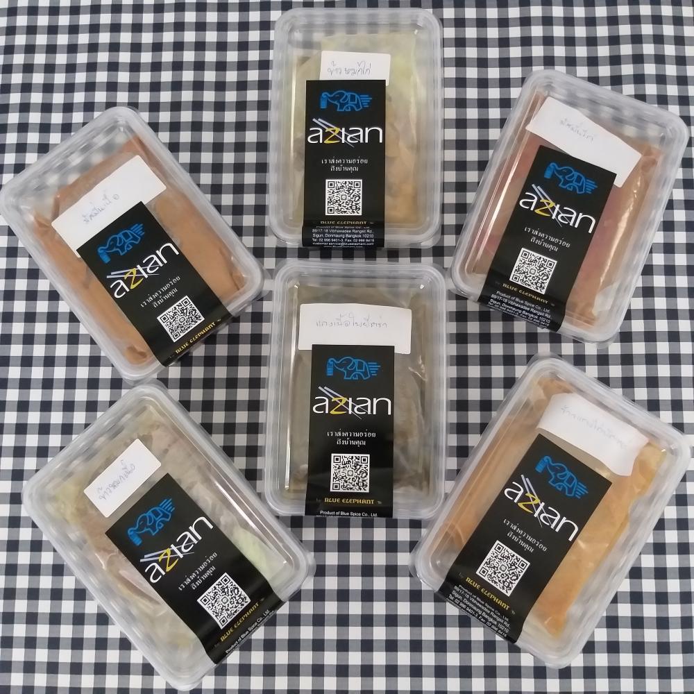 Home delivery service can be ordered daily from 10.30am-7.30pm, at 02-115-9830 and 080-070-1771 or Line: @azian or via Line Man and Grab.