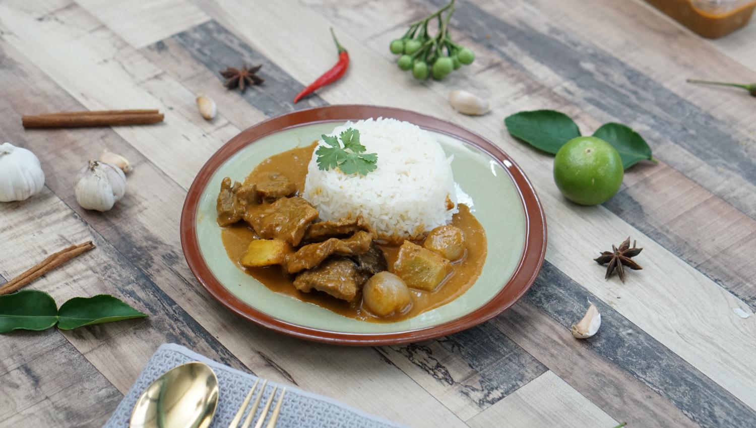 Azian's massaman curry comes with jasmine rice on the side. When you see the portion, you will realise it will be best enjoyed in a family setting and not the way you enjoy khao gaeng (a personal-size rice dish with curry topping).