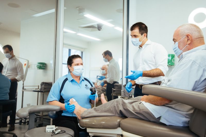 Assessments for new patients involve checking the nerve sensations and pulses in the feet, as well as blood flow.