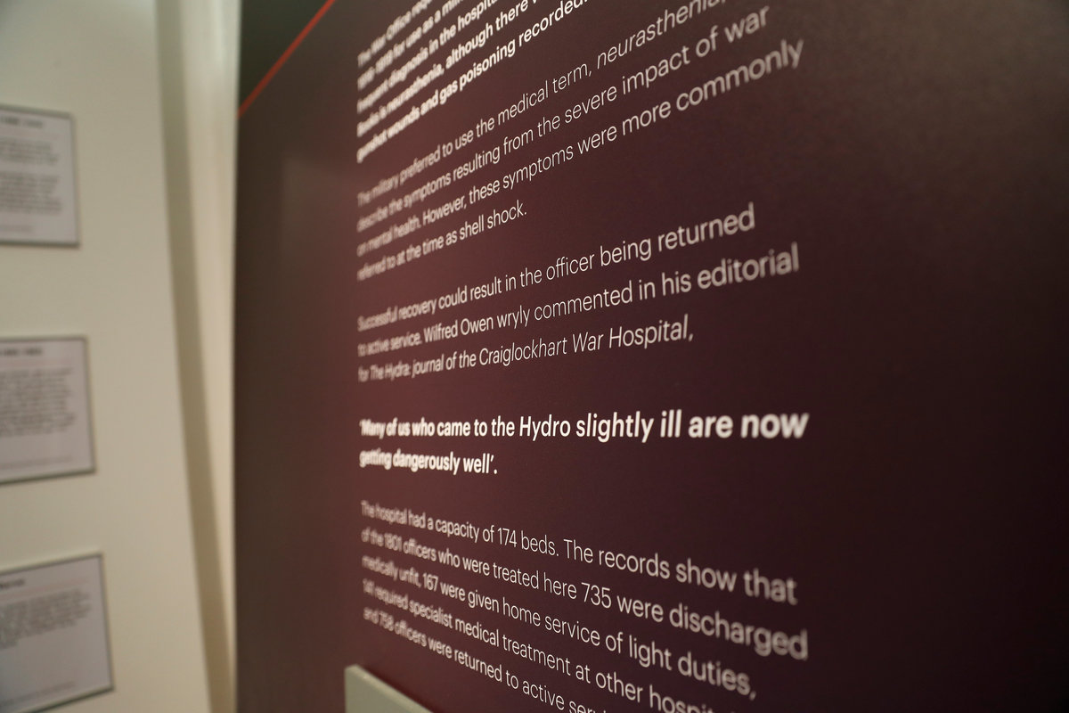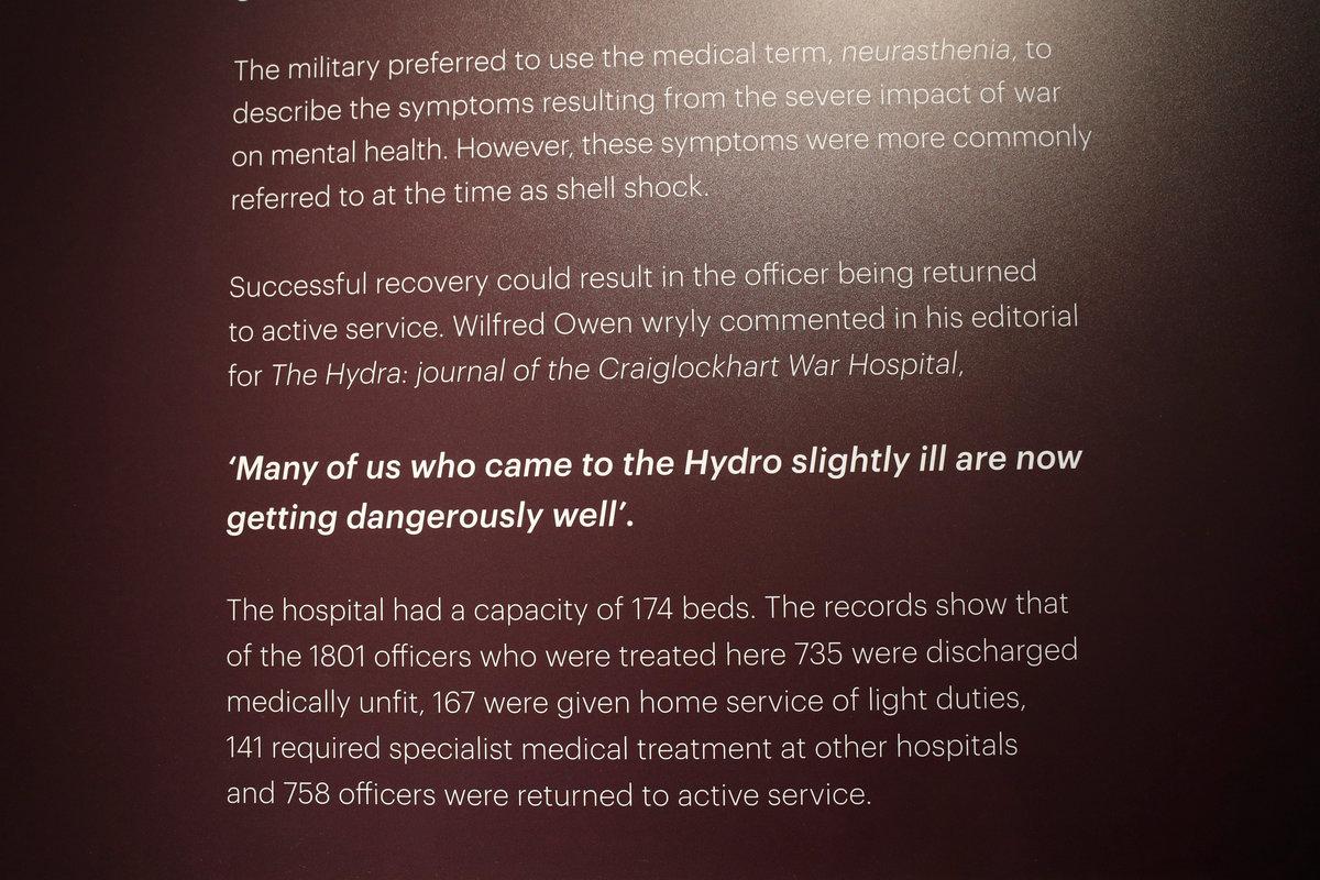 A permanent exhibition now allows visitors to view the War Poets Collection, offering a glimpse into the minds and experiences of the poets, patients and medical staff at Craiglockhart through documents, photographs and memorabilia.