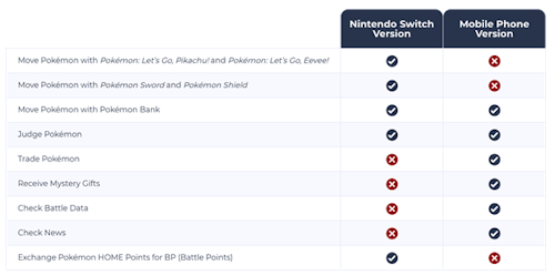 There's also a difference between whether you access Pokémon HOME from your Nintendo Switch or a mobile app, too. Mobile devices won't be able to handle moving Pokémon from the latest games like the Pokémon: Let's Go! series or Pokémon Sword/Shield. But you can use both the Nintendo Switch and the mobile app to transfer your old school Pokémon using Pokémon Bank.