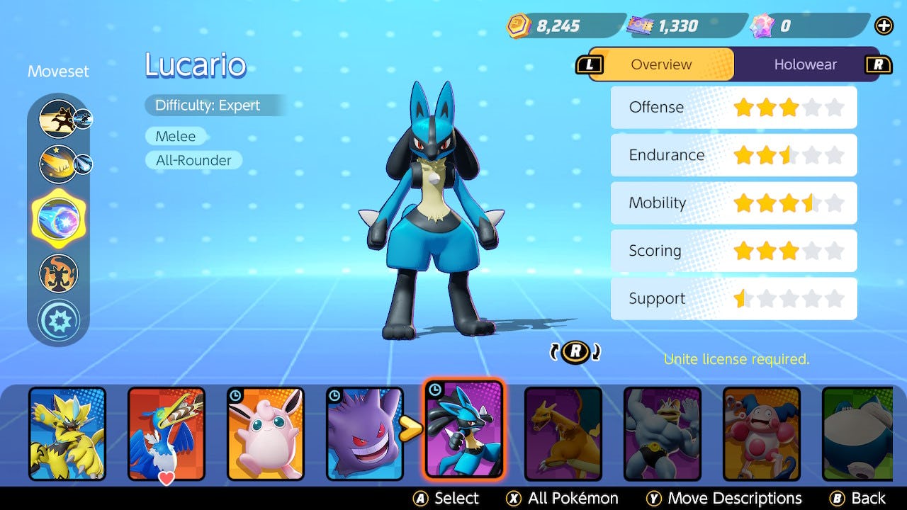 Lucario’s strength makes it a huge threat in the early game and pairs well with other strong attackers. As other Pokémon level up and evolve, they will catch up to Lucario in strength, though it can still hold its own if you play well.