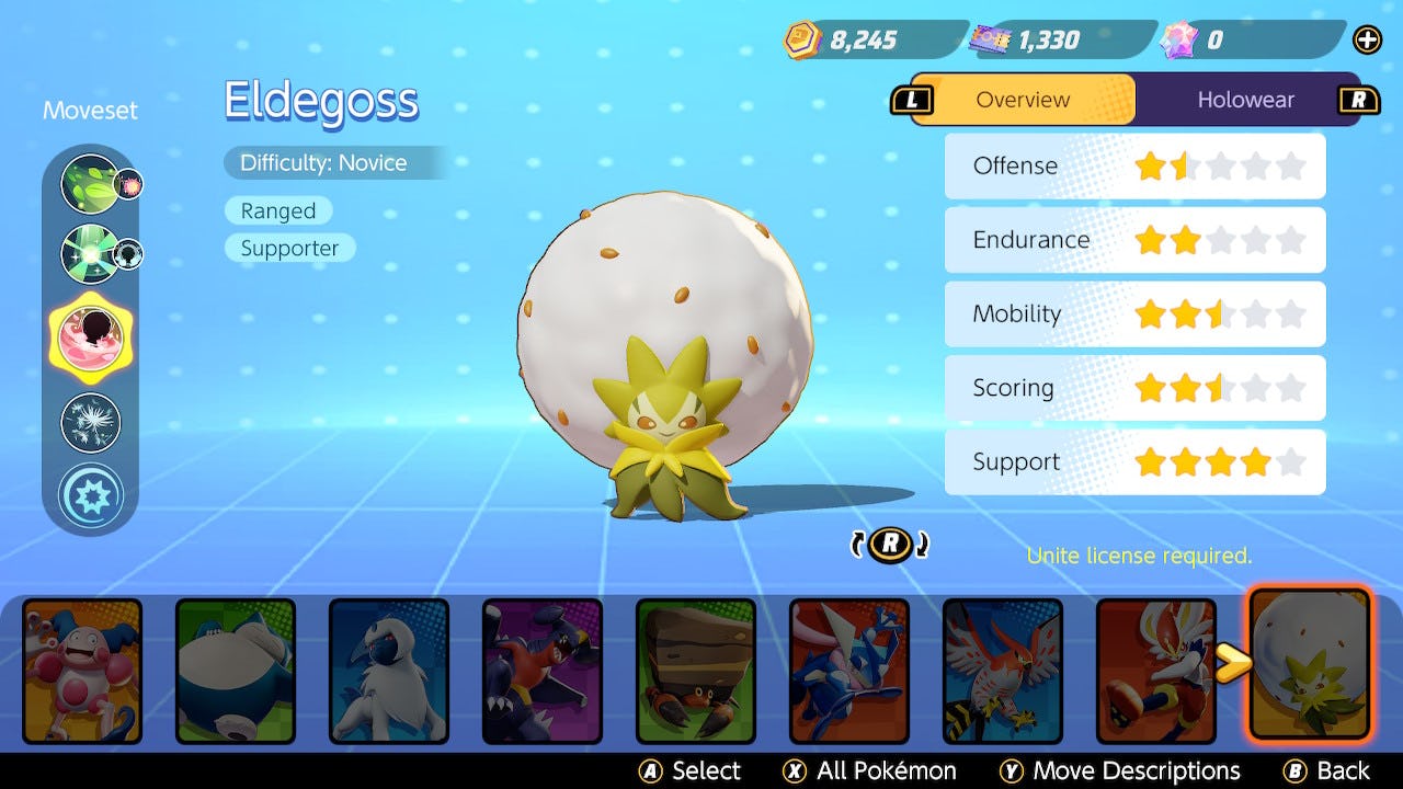 Eldegoss is the designated healer of Pokémon Unite. In the game, where HP recovery can take a while, having a healer on your side is beneficial. It can fend for itself with moves like Seed Bomb too.