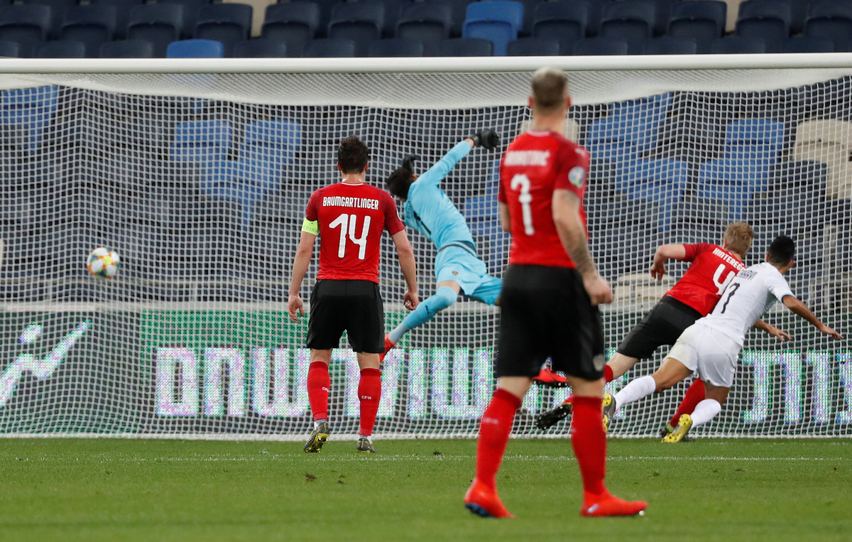 In the group's other games, an Eran Zahavi hat-trick steered Israel to a 4-2 home win over Austria while Slovenia were held to a 1-1 home draw by fellow former Yugoslavs North Macedonia.