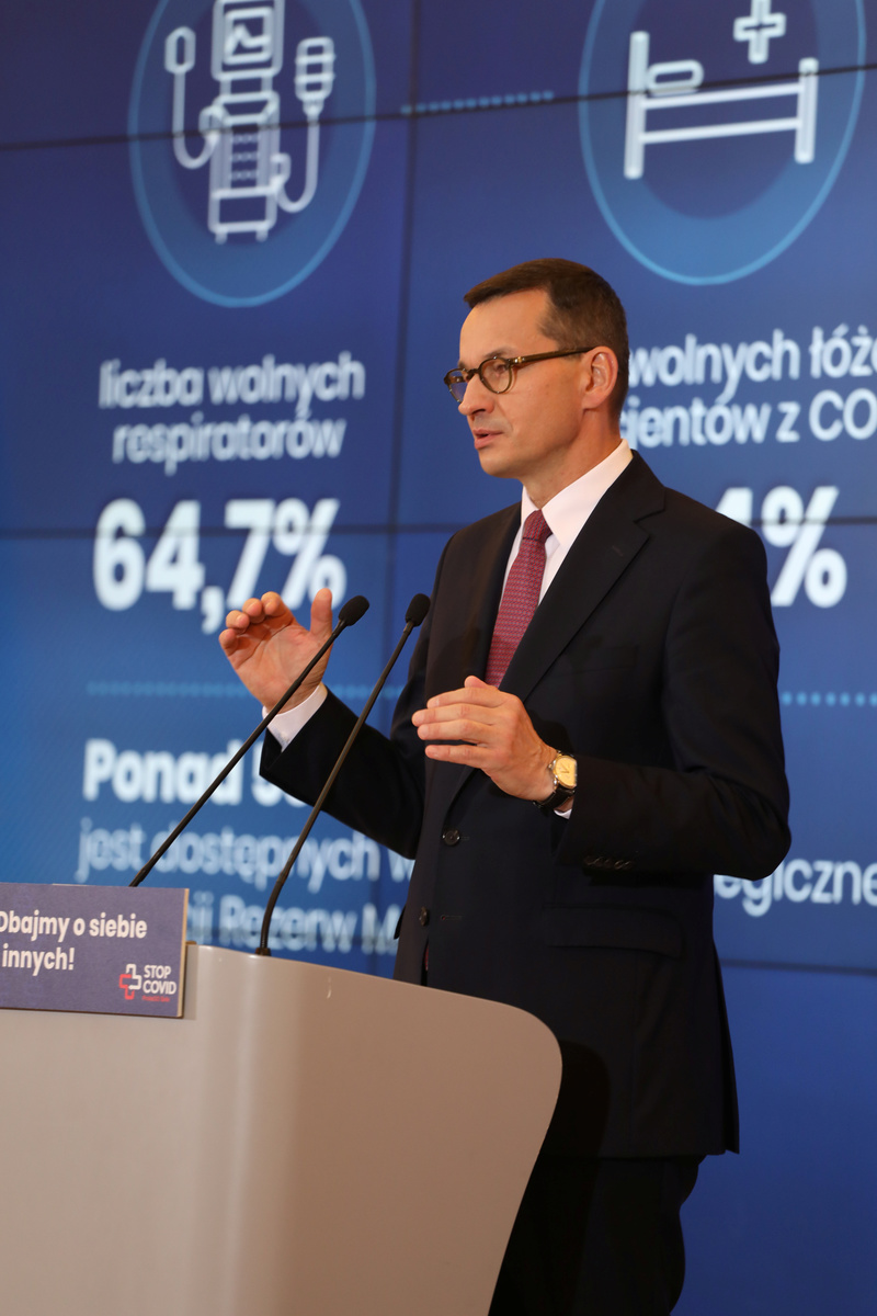 "We have to slow the growth of this in the entire country ... we are today a few steps away from a lack of beds and respirators," Morawiecki told a news conference.