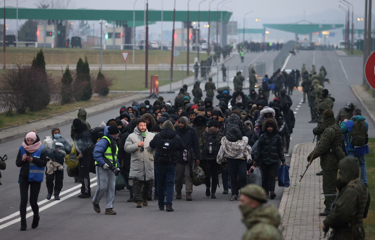 Belarusian state news agency BELTA said border guards had started moving migrants who gathered at a closed crossing point to a reception centre further away from the frontier.