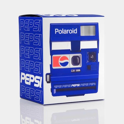 This specific camera is made from refurbished internal parts from vintage Polaroids made in the 1980s and ‘90s. The outside Pepsi wrapping was inspired by the soda’s branding from the same period (the 1992 iconography to be exact), producing a kind of modern nostalgia. There is some precedent for this particular marriage of brands as well.