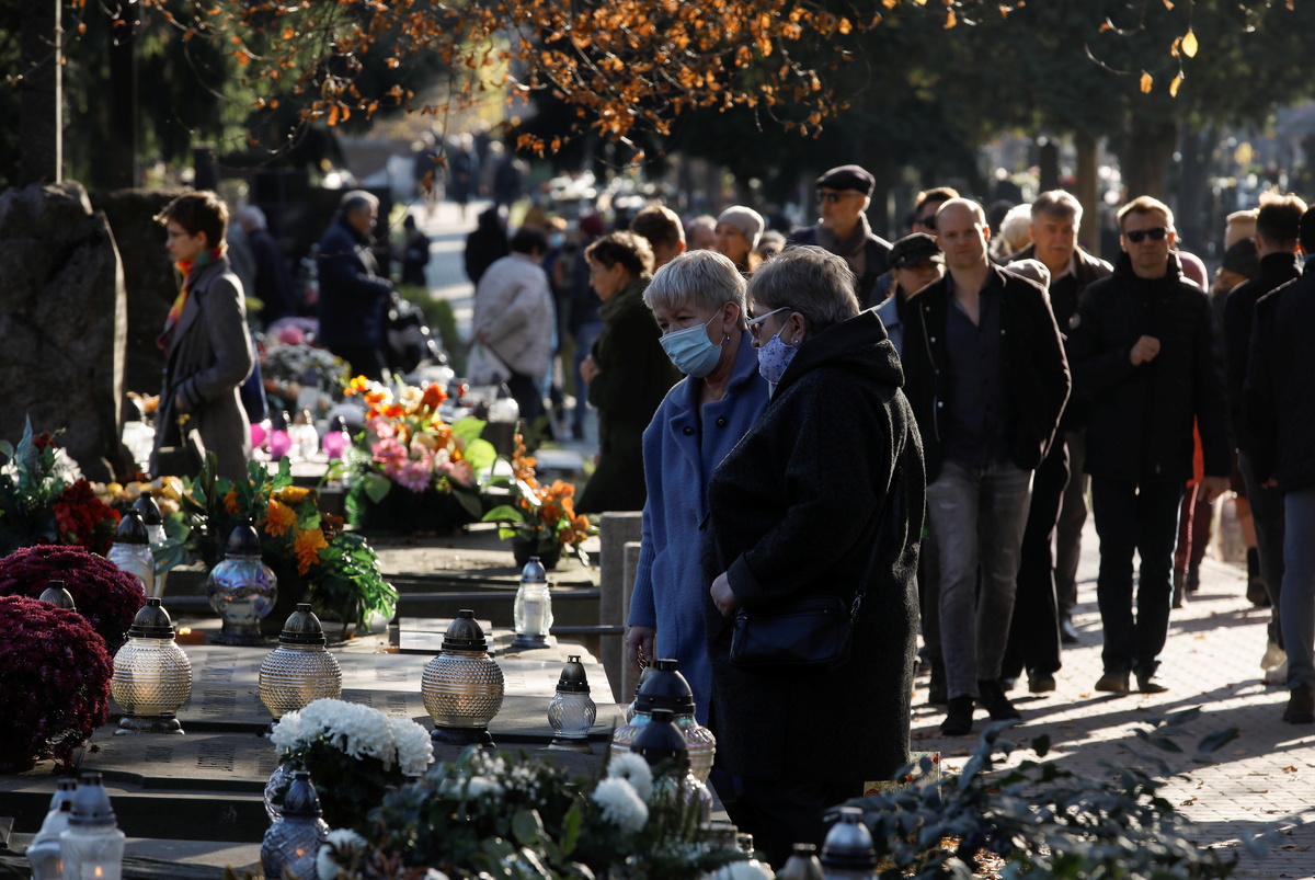 Poles lit candles and laid flowers on their loved ones' graves on Monday to celebrate All Saints Day, resuming a tradition interrupted last year by the coronavirus pandemic.