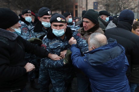 Prime Minister Nikol Pashinyan has been a target of popular discontent since November, when he signed an agreement to end fighting in the separatist territory of Nagorno-Karabakh. The agreement ceded land in Azerbaijan that had been under Armenian control since the mid-1990s. The 44 days of fighting left some 6,000 people dead.