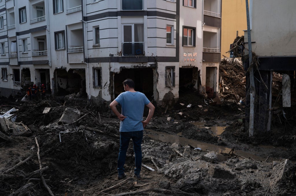 The worst-hit area was the town of Bozkurt, in Kastamonu, where the floods swamped homes and shops, flattened an eight-story building and seriously damaged other buildings that are suspected of being improperly constructed on a streambed.
