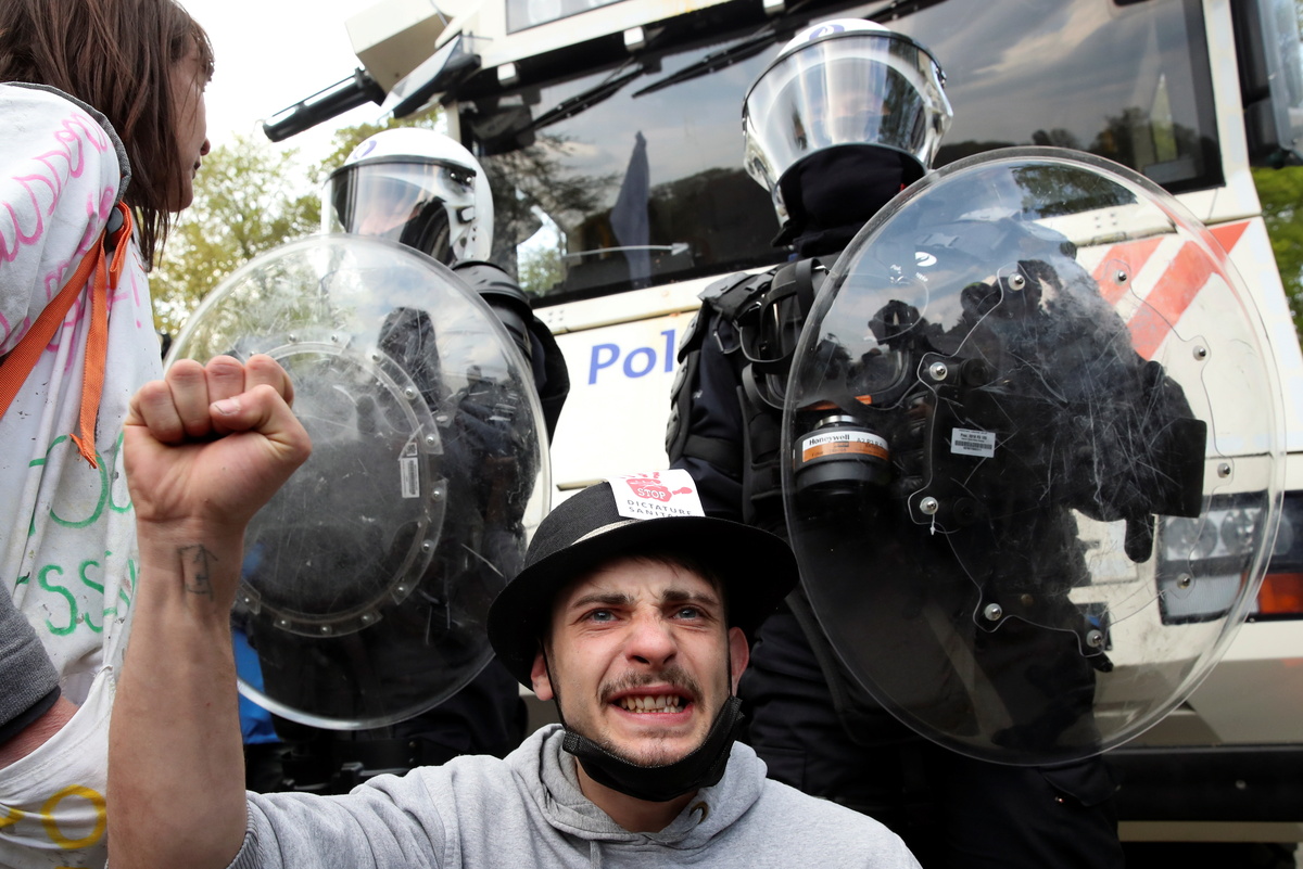 The follow-up Boum 2 event on May 1, a traditional day for demonstrations, was held a week before the Belgian government allows cafe and bar terraces to open and lets groups of more than four people meet outside in a relaxation of COVID-19 rules.