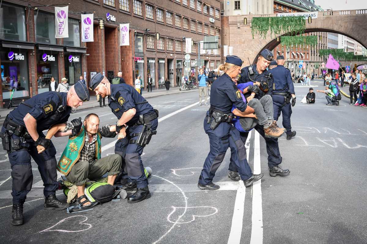 Swedish police broke up demonstrations in Stockholm on Friday by climate change activists from Extinction Rebellion who had blocked two bridges in the city centre.