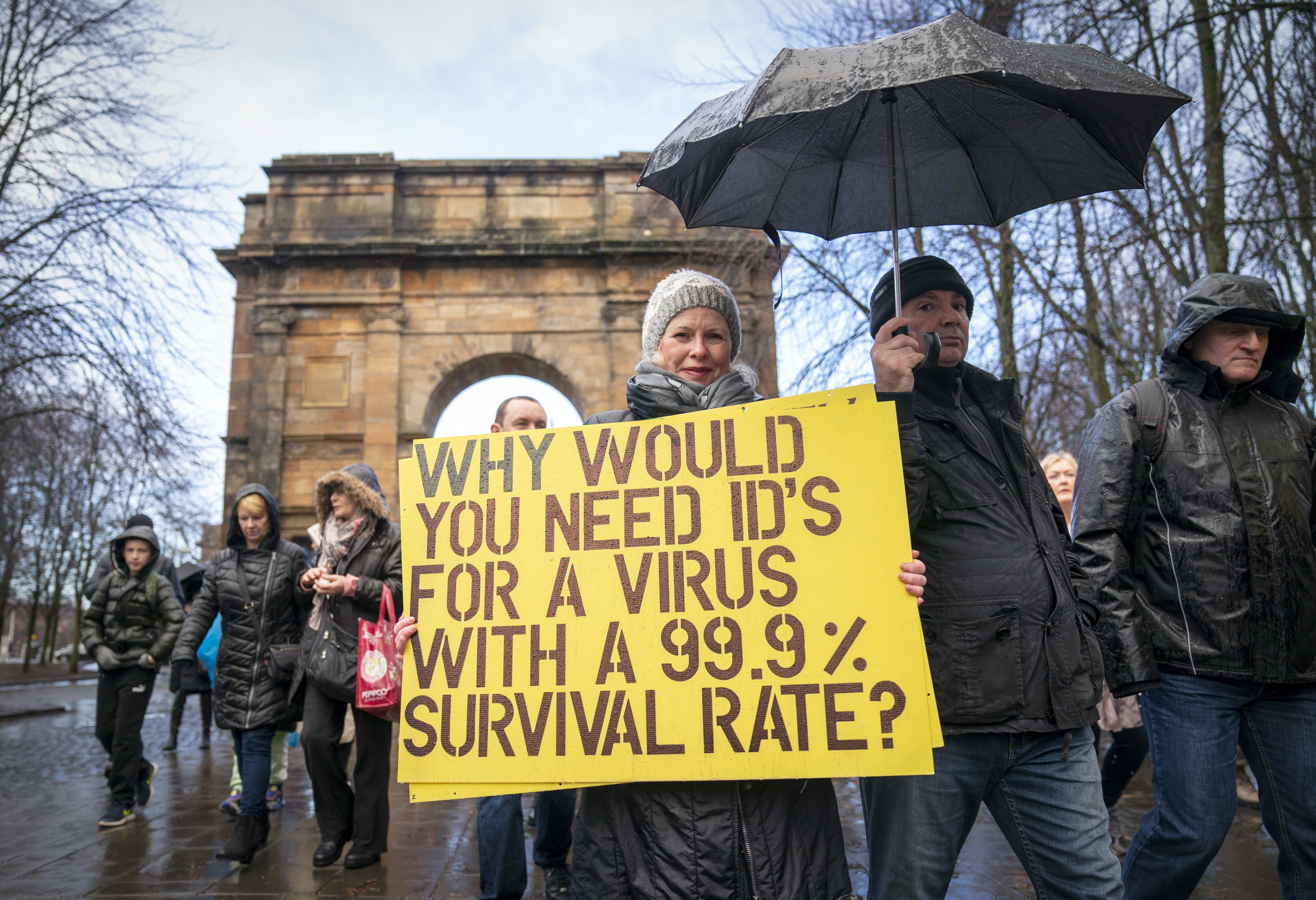The protest is believed to have been organised by Scotland Against Lockdown, a group that runs campaigns against mandatory facemasks, the Scottish and UK Governments’ Coronavirus Act 2020, social distancing and mandatory vaccines, according to its social media pages.