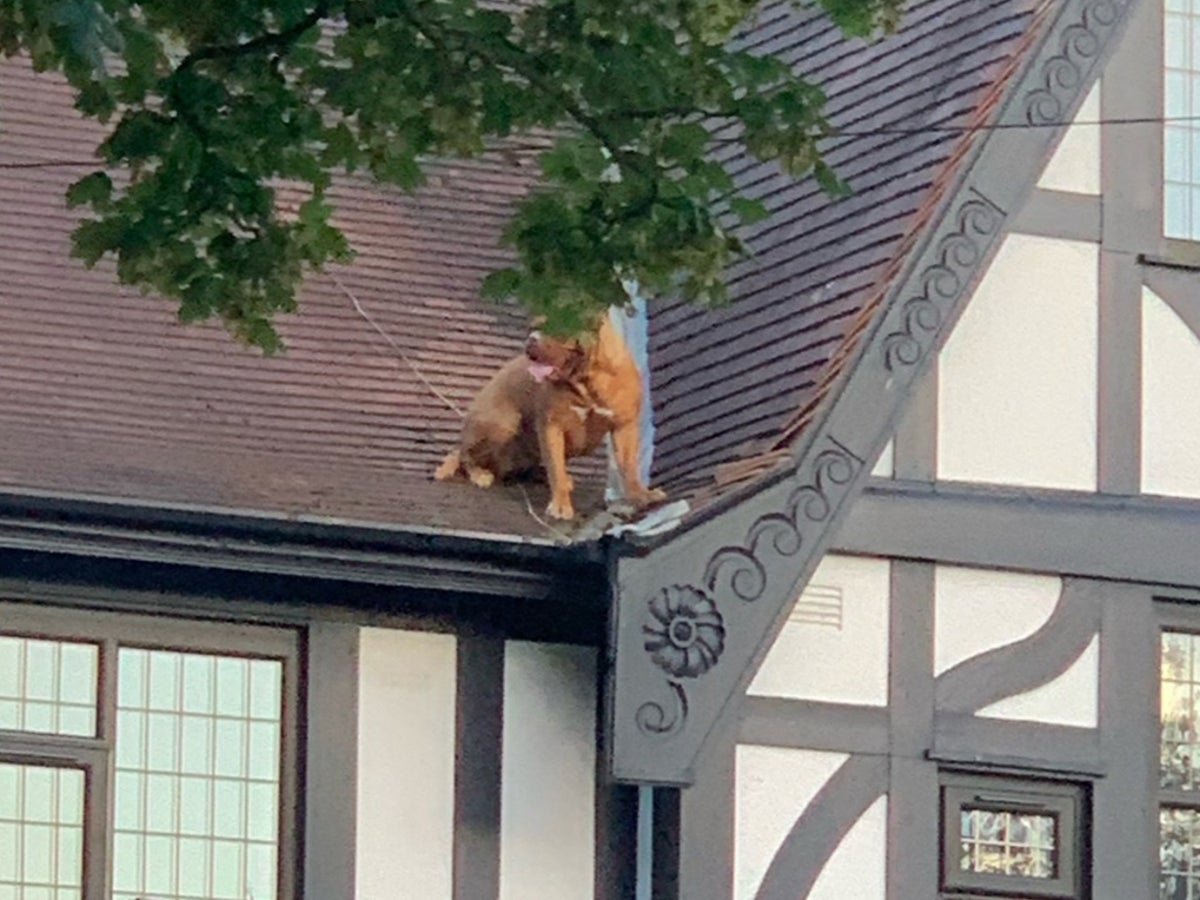 The French Bullmastiff had somehow got itself on top of the house in Thornton Cleveleys, Lancashire.