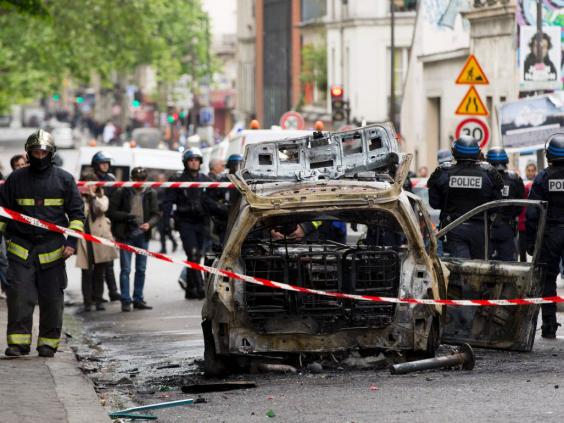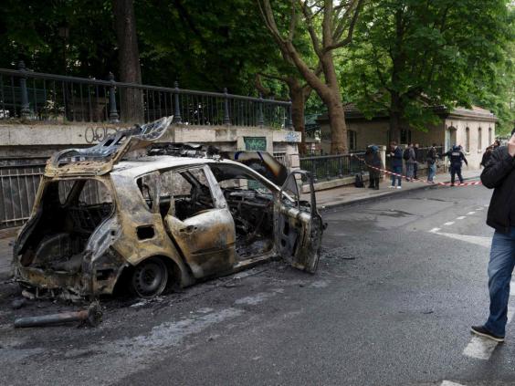 The police vehicle was struck by a molotov cocktail on the Quai Valmy in the 10th arrondissement, close to the scene of the jihadist attacks in Paris last November.