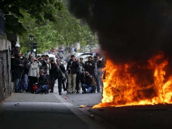 Riot police and gendarmerie units brought in from the provinces pushed them off the square. Shortly afterwards the police car was set alight.
