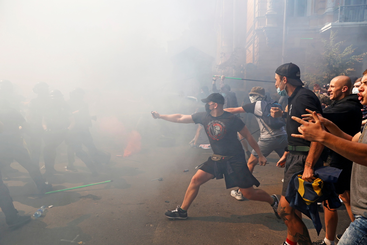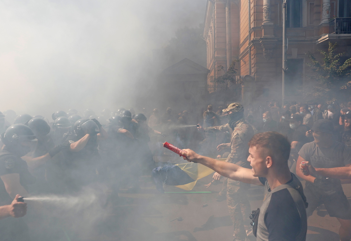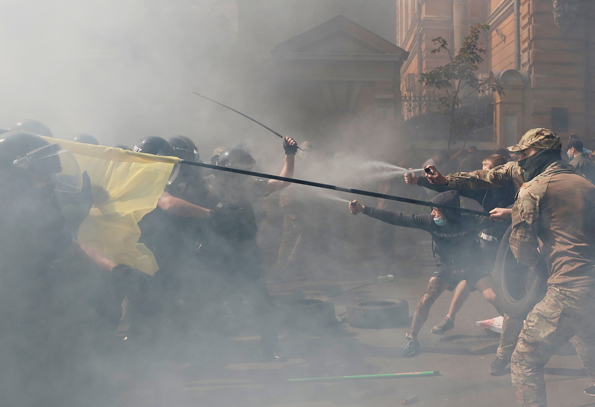 Interior minister Denys Monastyrskiy said eight policemen were injured during the clashes and a criminal probe had been launched. He wrote on Facebook that the clashes began when the police tried to search protesters on their approach to the president's office but they resisted.