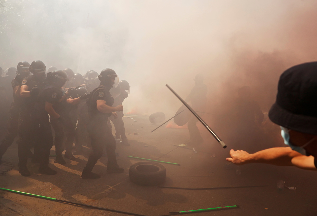 The group said the violence was provoked by police officers when they blocked access to the building, and some protesters got injuries as a result.