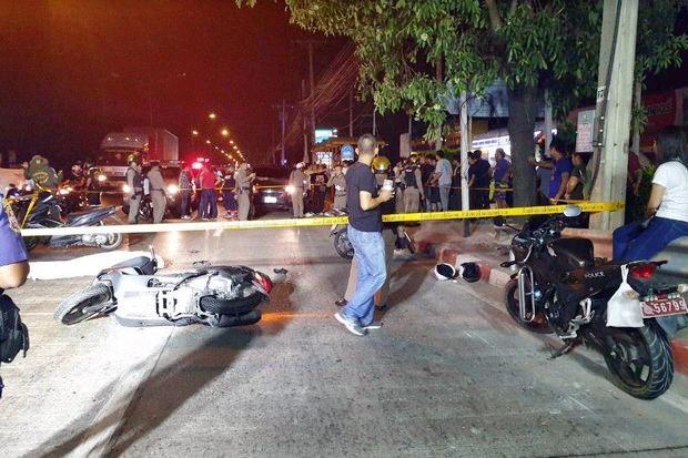 The officers decided to ram the motorcycle to stop and arrest Ekachai, which led to a fire fight that ended with Ekachai's death. Shortly afterwards, Ekachai's friends arrived and tried to attack the officers.