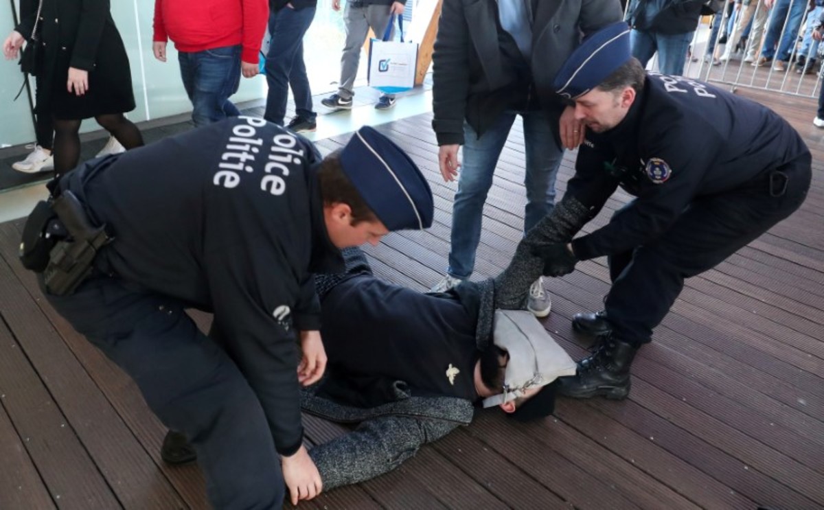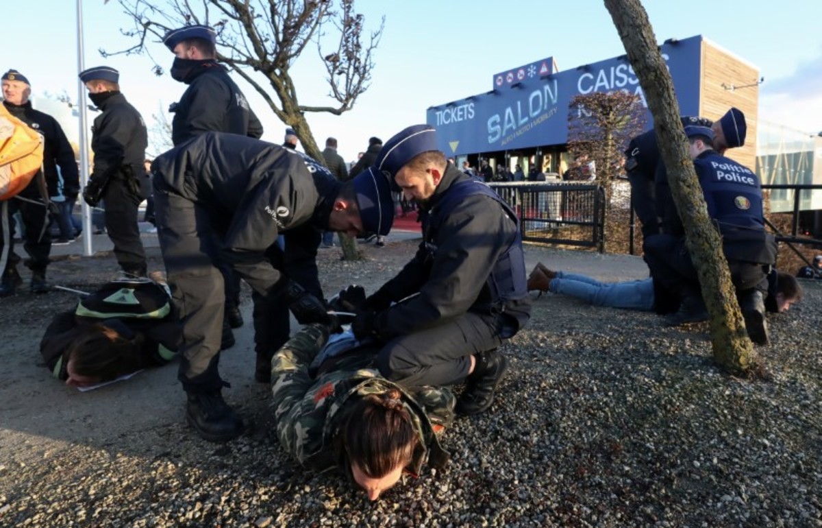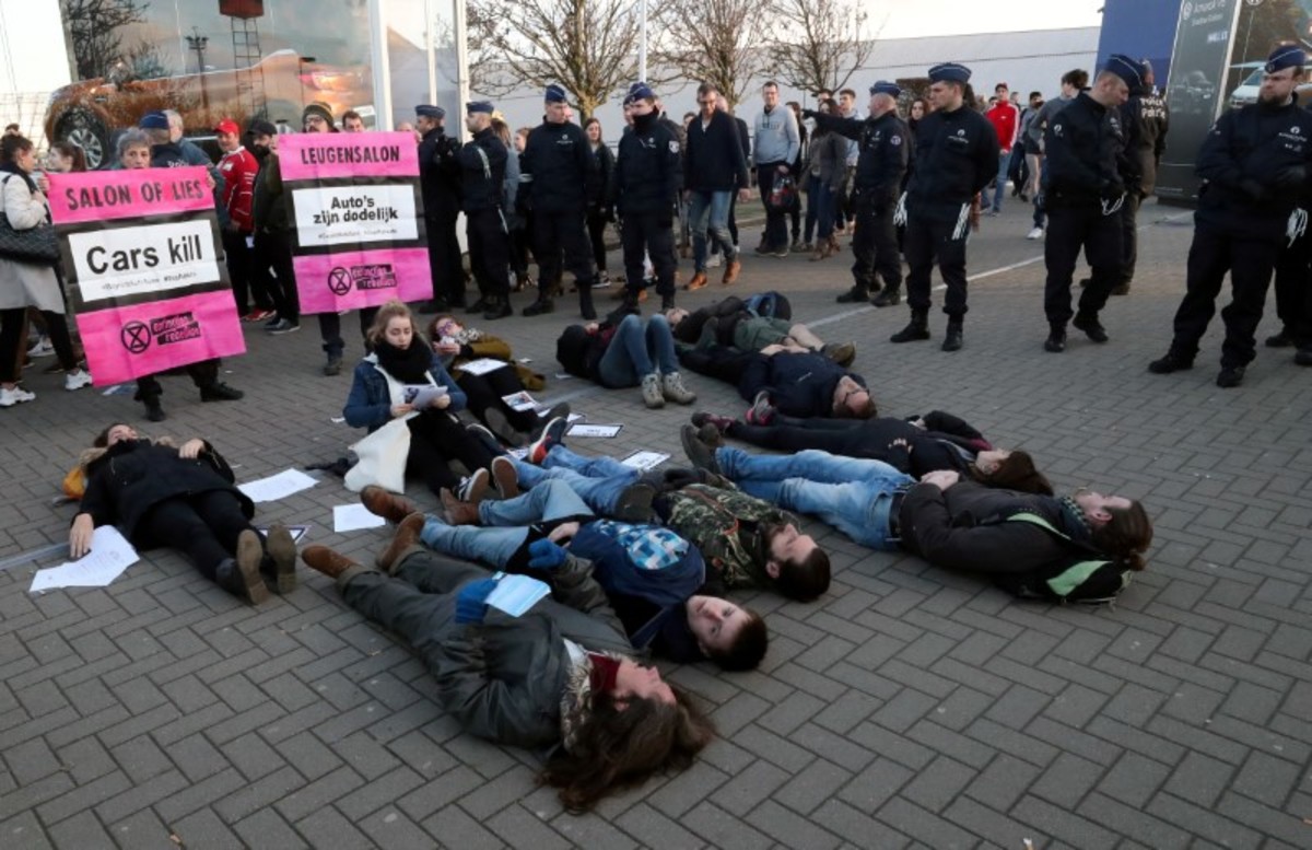 Police detained 185 protesters in central Brussels on Saturday after the environmental protest group Extinction Rebellion staged demonstrations at a car show in protest at the auto industry's role in CO2 emissions that cause climate change.