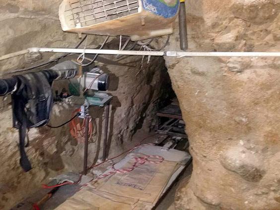 Most of the passages under the border were built by Guzman’s cartel, past masters at the craft of tunnel-building. Guzman, who has been on the run since his escape in July, came close to recapture this month after he was spotted by Mexican special forces near Cosala, a town in the mountains of his home state, Sinaloa. Authorities believe he broke his leg after falling off a small cliff as he fled his pursuers.