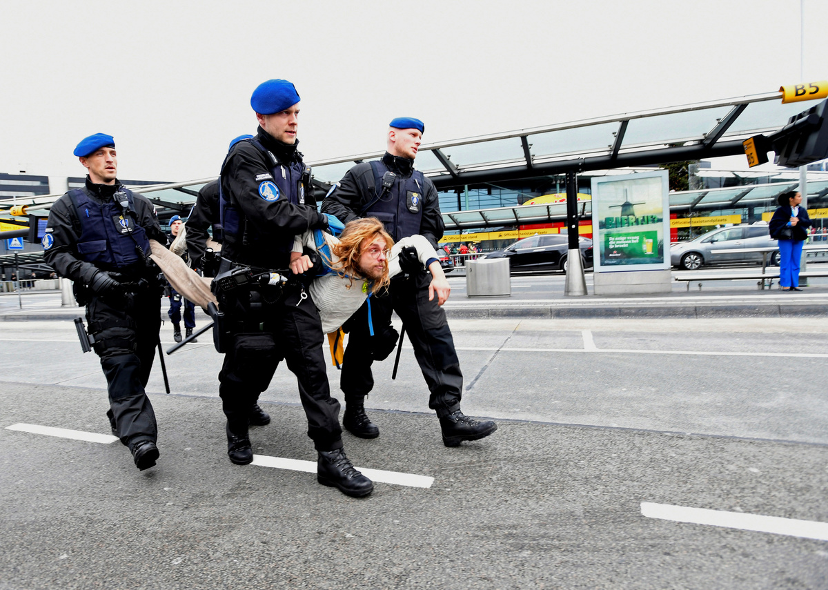 "After multiple warnings to leave Schiphol Plaza peacefully, the Marechausse has now begun arresting Greenpeace protesters," the force said in a statement.