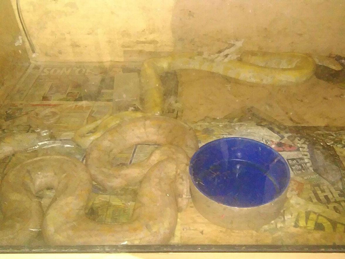 According to the BBC, police found 24 live snakes, six dead ones, a bull-frog and a further reptile.