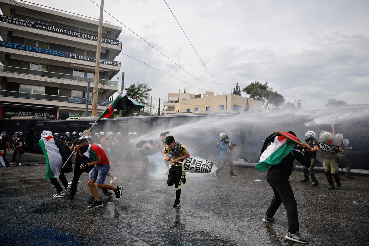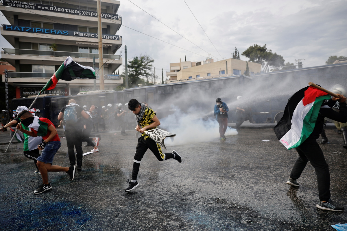 Greek police fired tear gas and water cannon on Saturday to disperse pro-Palestinian demonstrators protesting in Athens against Israeli attacks on Gaza.